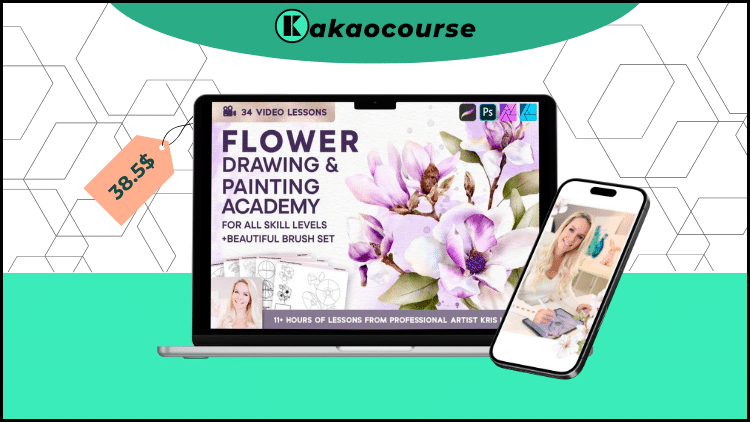 You love flowers. You want your paintings to feel delicate and alive—petals with believable folds, colors that glow, and paper texture that still looks like, well, paper. But long technical courses and scattered tutorials never quite add up. Flower Drawing & Watercolor Masterclass 2 by Kris Lauren gives you a precise, joyful path: a complete, step-by-step system for drawing florals and painting them in luminous digital watercolor (Procreate-friendly) while keeping that coveted handmade look.