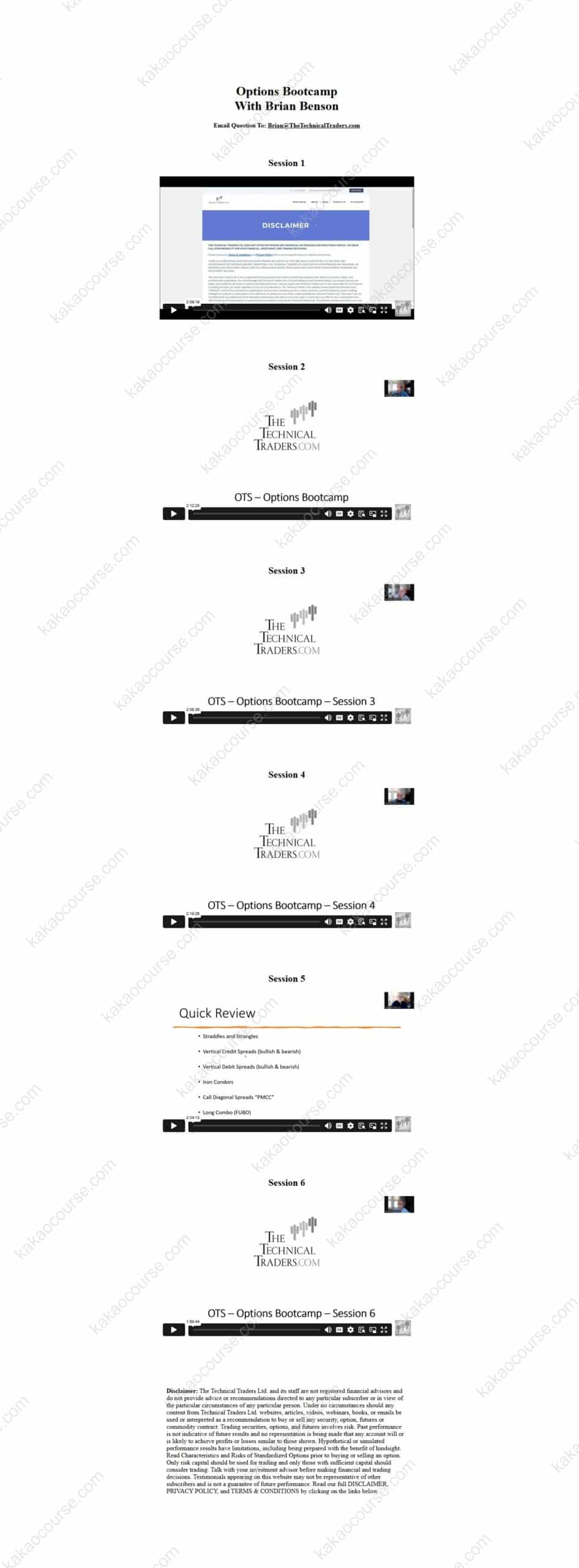 Options Bootcamp Course by Brian Benson is a six-session curriculum that takes you from core options foundations to advanced strategy design and professional-grade risk management. The course is structured as a progression: you learn the mechanics first, then apply them to chart context and trade selection, then expand into multi-leg strategies, and finally tighten execution through psychology and risk controls.
