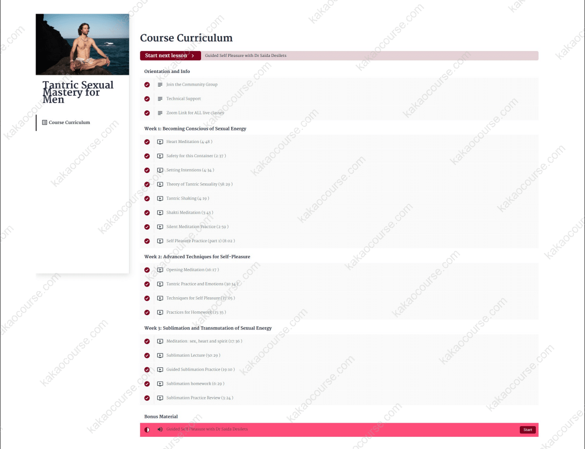 Choose Tantric Sexual Mastery for Men today and begin a disciplined weekly practice that can reshape how you experience desire, intimacy, and embodied confidence.